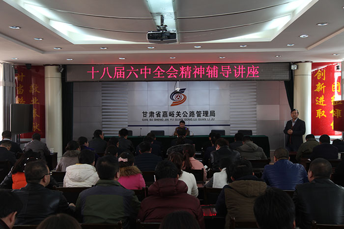 會后,聘請嘉峪關(guān)市委講師團(tuán)陳玉忠講師對黨的十八屆六中全會精神進(jìn)行了專題輔導(dǎo),陳玉忠團(tuán)長緊緊圍繞十八屆六中全會精神這一主題,從六中全會對全面從嚴(yán)治黨的新貢獻(xiàn)、新形勢下繼續(xù)推進(jìn)從嚴(yán)治黨的必要性以及嚴(yán)肅黨內(nèi)政治生活、強(qiáng)化黨內(nèi)監(jiān)督的具體舉措和重要部署三方面做了專題輔導(dǎo),全面解讀了十八屆六中全會的新思想、新觀點(diǎn)、新要求。同時陳團(tuán)長又引經(jīng)據(jù)典、旁征博引,對違反《準(zhǔn)則》、《條例》的典型案例做了深入剖析,講解內(nèi)容全面細(xì)致、深入淺出。此次專題講座要求,全局上下要充分利用冬訓(xùn)有利時機(jī),將六中全會精神作為當(dāng)前的一項重要學(xué)習(xí)任務(wù),抓緊抓實(shí),不斷掀起學(xué)習(xí)熱潮。