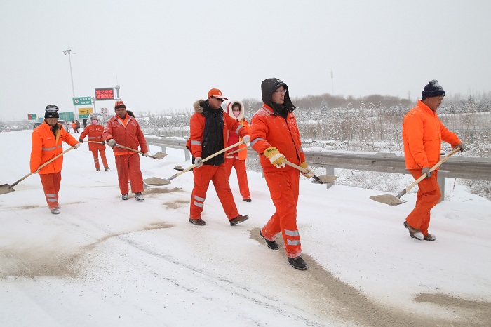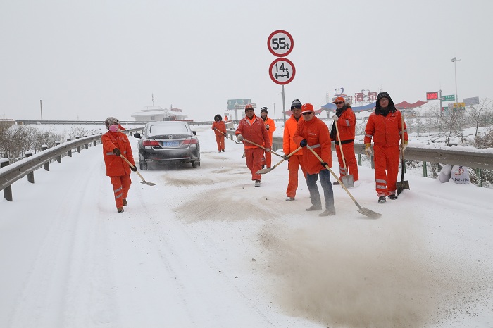 機具人員全出動。該中心利用自制的融雪劑撒布機進行鋪撒作業,在各匝道口、急彎陡坡、大橋橋面等重點路段撒鋪防滑料和融雪劑。此次清雪保暢,該中心共出動養護人員30余人次,車輛和機械設備12余臺次,共撒鋪防滑料60余方,融雪劑6噸,有效保障了高速公路行車安全。