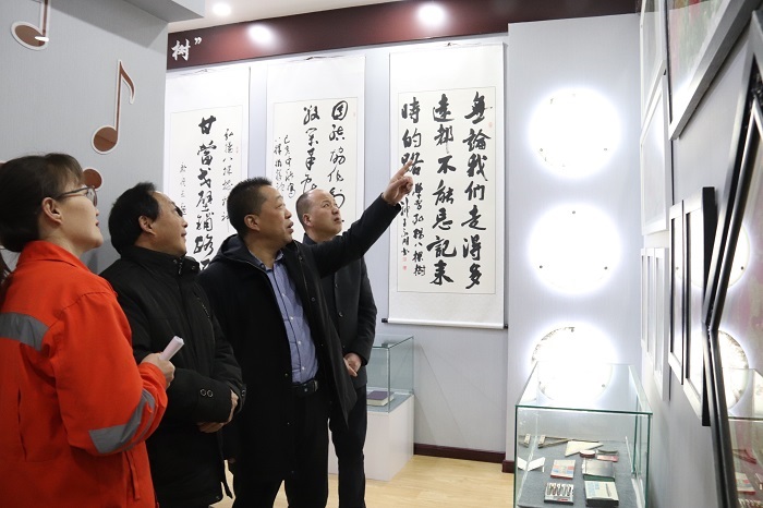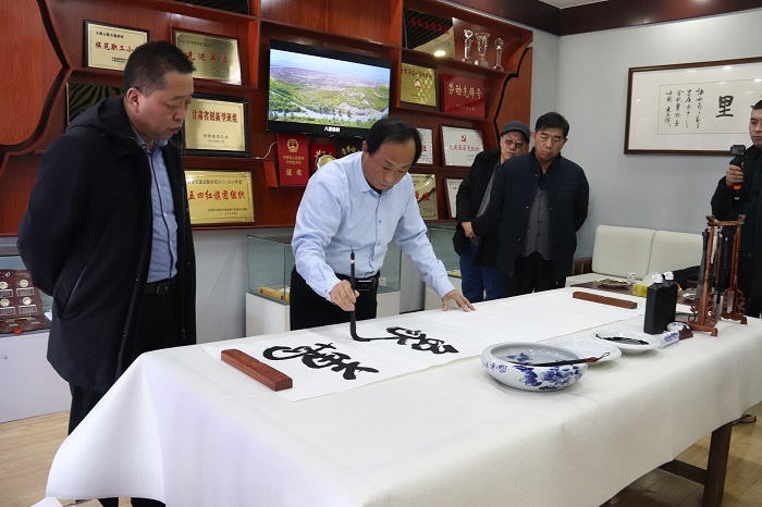 活動(dòng)中,在場人員共同參觀了“八棵樹精神”職工文化交流園地,書法家們以學(xué)習(xí)“八棵樹精神”為主題進(jìn)行了書法創(chuàng)作,紛紛提筆揮毫,一幅幅筆精墨妙的書畫作品躍然紙上,創(chuàng)作墨寶二十余幅,并悉數(shù)贈(zèng)予嘉峪關(guān)公路局收藏。