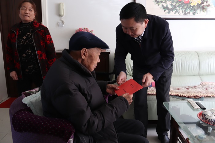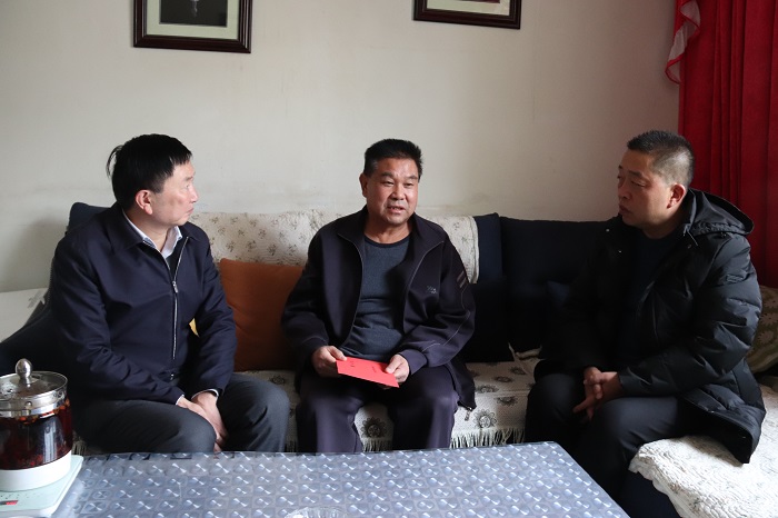 在新中國第一代養路工人鄭占乾家中,黃處長一行與鄭占乾老人促膝談心,聆聽“八棵樹精神”的故事,詳細詢問了老人的身體狀況、生活情況,并代表廳黨組送上慰問品和慰問金,囑咐該局要落實好退休干部的“兩項待遇”,關心和愛護好離退休職工。