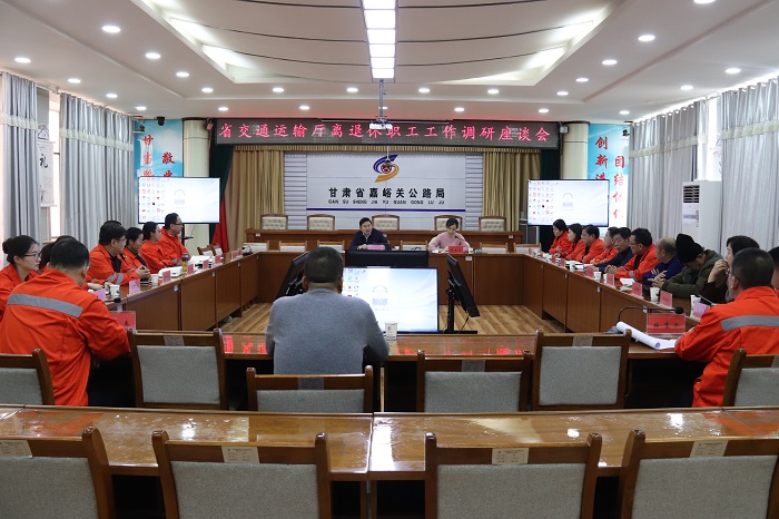 在調研座談會上,黃處長聽取了嘉峪關公路局退休職工工作和退休黨支部建設匯報,對取得的成績表示肯定,特別是對“八棵樹精神”取得的豐碩成果表示贊揚。并就落實省廳關于老干部工作的文件精神、落實退休干部“兩項待遇”等方面工作提出要求,代表廳黨組向嘉峪關公路局離退休干部職工傳達了誠摯問候和衷心祝福。