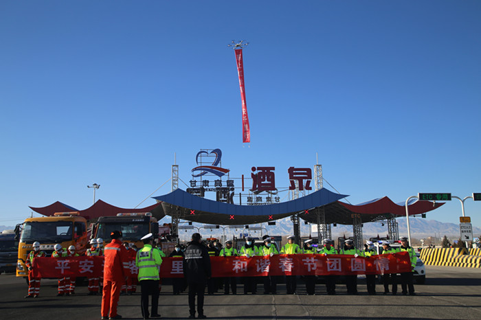 嘉峪關公路局高等級公路養護中心協同酒泉公安局高速公路泉湖大隊、酒泉通達高速養護項目部等“一路四方”協同聯動單位多方聯動,出謀劃策,在酒泉收費廣場及嘉峪關收費廣場開展了“系上紅絲帶·平安千里行”、發放宣傳單等活動,為確保2021年春運工作安全平穩、有序暢通打牢堅實的基礎。