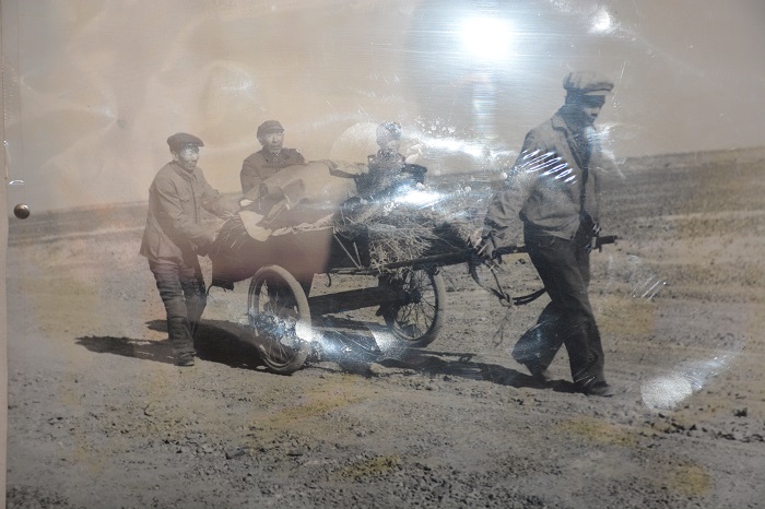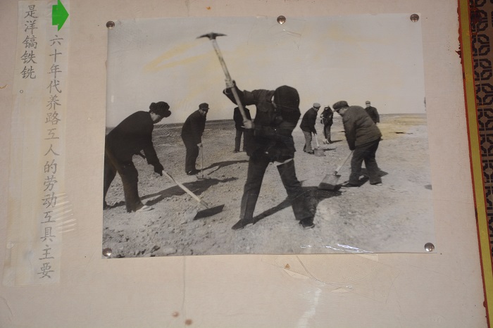 基本上每天都是班長領(lǐng)著干,步行一去一回就要幾十公里,到了工地稍作休息,就用洋鎬刨公路兩邊的硬砂石,必須得用洋鎬刨,刨下來后用鐵鍬鏟起來裝滿柳條框,用來墊路上的坑槽、搓板等病害。到了中午,在戈壁灘休息一小時,曬得非常難受,汗流浹背的,到冬天寒風刺骨,特別冷,中午休息就只能打個盹。