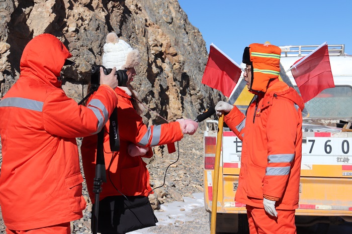1月29日,省電視臺新聞中心“八棵樹精神”專題采訪拍攝組,深入嘉峪關公路局管養的省道215線鏡鐵山海拔最高處——二指哈拉進行跟蹤采訪。