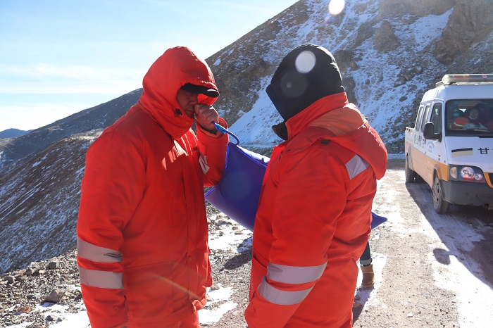 高海拔、高嚴寒、高強度,這挑戰極限的“三高”對初來此地的人并不友好,有幾個人出現了不同程度的高原反應,趕緊吸幾口氧氣、緩一緩、接著干!
