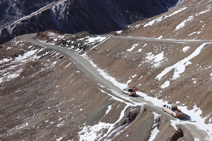 太陽還未升起,拍攝組一行便踏上了前往鏡鐵山的道路,經過四個多小時的車程,終于到達了海拔高達4500米的鏡鐵山二指哈拉,然而在拍攝組到達時,嘉峪關公路局的養路職工們已經開始了一天的勞作……