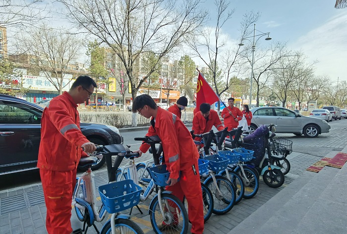 在周邊街道開展義務清掃志愿服務,團員青年拿上掃把、夾子等工具,走上街頭清掃路面的煙頭、雜物等垃圾,并對沿途停放雜亂的共享單車、電動車等進行整理,在規定的停放區域內擺放整齊。