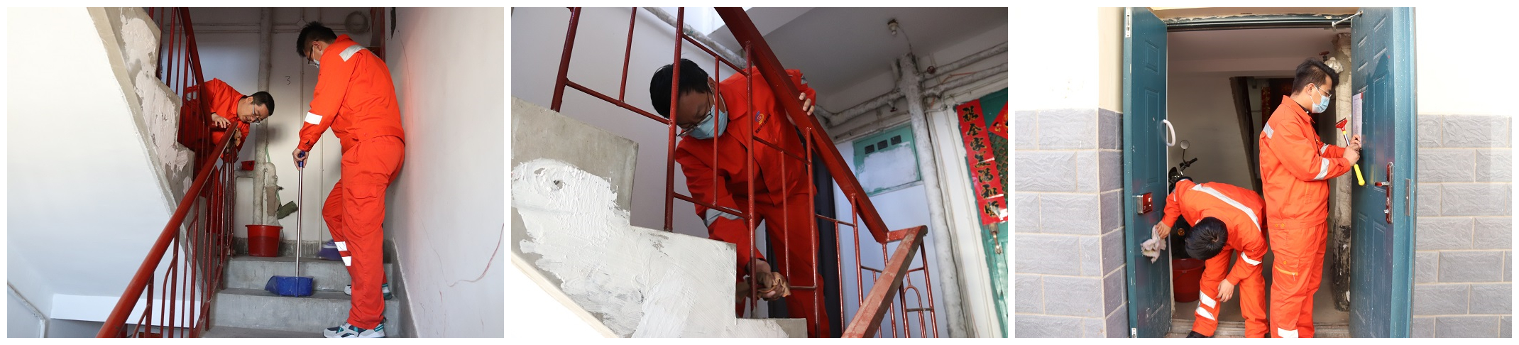 深入社區開展清潔服務,志愿者們自備鏟子、抹布、掃把、水桶等,分為兩組對樓道內亂貼的小廣告進行清理鏟除,擦洗樓梯扶手和單元門,清掃樓道內垃圾等,大家齊心協力不一會兒就完成了兩棟樓所有樓道的清潔任務。