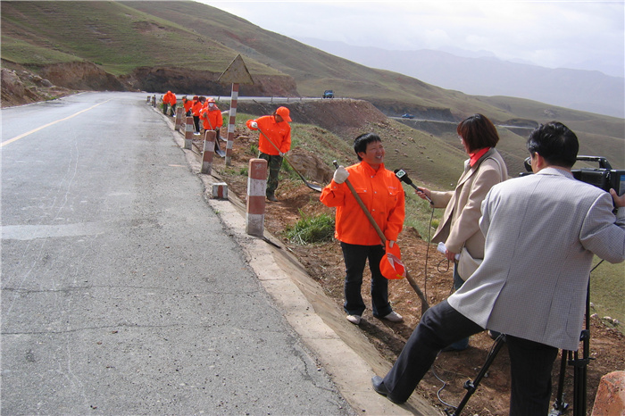 2005年9月,甘肅電視臺采訪嘉峪關公路總段奮戰在S215線的養護女職工