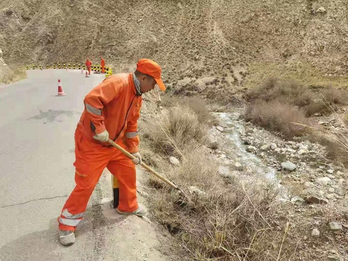 甘為“孺子牛”,肩上扛擔(dān)當(dāng)。如果說順境中的堅(jiān)守是職業(yè)精神的體現(xiàn),那么困難重重中的堅(jiān)守,就是一種精神,一種人格力量。輪訓(xùn)期間,S215線迎來了一場鵝毛大雪,由巡路人員的消息得知,一輛裝載鏡鐵山礦急需設(shè)備的貨車被困在了吊大坂,無法自行脫困,司機(jī)急得直跺腳,連連請求幫助,但僅靠巡查人員難以脫困。吳建華同志得悉后,立刻組織人員設(shè)備前往救援,積雪的道路不好走,車速稍快,輪胎就開始打滑,但一想到關(guān)乎人民群眾、國家財(cái)產(chǎn)的安全,他只能緊緊把住方向盤,在保證安全的前提下保持最快車速。當(dāng)救援車輛的一抹橘色出現(xiàn)在茫茫白雪之中,司機(jī)早已熱淚盈眶。此時(shí),率先下車并疾步上前的吳建華同志傳來沉穩(wěn)有力的聲音,“我們來了,請您放心!”發(fā)現(xiàn)車輪陷入積雪之后,他手握鐵锨和同事們鏟除積雪,然后又回身從車?yán)锶〕龇阑湥p繞在輪胎上。凜冽寒風(fēng)在這四千多米的海拔尤為強(qiáng)勁,直吹得人臉頰生疼,瑟瑟發(fā)抖,但在半個(gè)多小時(shí)的救援行動中,他讓同事們輪流回車?yán)锒愣泔L(fēng),自己卻咬牙硬頂著寒風(fēng),順利完成了救援。回到車?yán)锖螅牒赛c(diǎn)熱水暖暖身,凍得僵硬的雙手竟連擰開杯蓋的動作都無法完成。片刻的歇息之后,為了確保途經(jīng)車輛的行駛安全,他又帶頭對急彎陡坡進(jìn)行除雪鏟冰作業(yè),回到養(yǎng)管站時(shí),晚餐時(shí)間都早已過去。