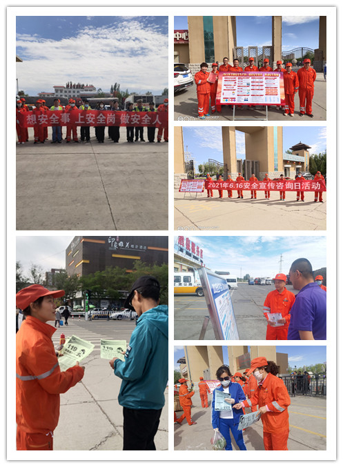 為認(rèn)真貫徹“安全生產(chǎn)月”活動(dòng)的安排部署,扎實(shí)開展好“安全生產(chǎn)咨詢?nèi)?rdquo;活動(dòng),6月16日,甘肅省嘉峪關(guān)公路事業(yè)發(fā)展中心組織雄關(guān)公路段、鏡鐵公路段、高等級(jí)公路養(yǎng)護(hù)中心、應(yīng)急中心、試驗(yàn)檢測(cè)中心,聯(lián)合高速、交警、路政等部門,分別在高速公路服務(wù)區(qū)、迎賓湖景區(qū)等地,結(jié)合實(shí)際和公路安全生產(chǎn)行業(yè)特點(diǎn),通過(guò)設(shè)立宣傳展板、懸掛條幅、發(fā)放安全宣傳手冊(cè)等形式,圍繞“落實(shí)安全責(zé)任、推動(dòng)安全發(fā)展”活動(dòng)主題,積極開展第20個(gè)全國(guó)“安全生產(chǎn)月”宣傳咨詢?nèi)栈顒?dòng)。