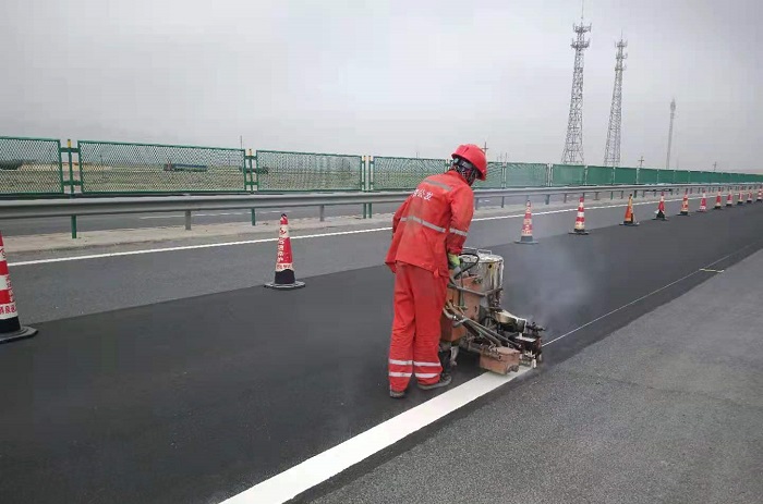 一是強化質量管理,要求標線原材料的性能、質量必須滿足現行規范標準,嚴格把控施工作業各項流程環節有序銜接,重點對標線厚度、寬度及逆反射亮度系數等參數進行抽查;二是嚴抓安全管理,嚴格按照《高速公路養護安全作業規程》擺放交通標志,作業中安排專人指揮交通,認真開展逃生演練,時刻提醒作業人員注意自身安全;三是技術人員跟班作業,跟班作業人員按照“三管三必須”“一崗雙責”的要求,嚴格履職,認真做好各項檢查記錄。