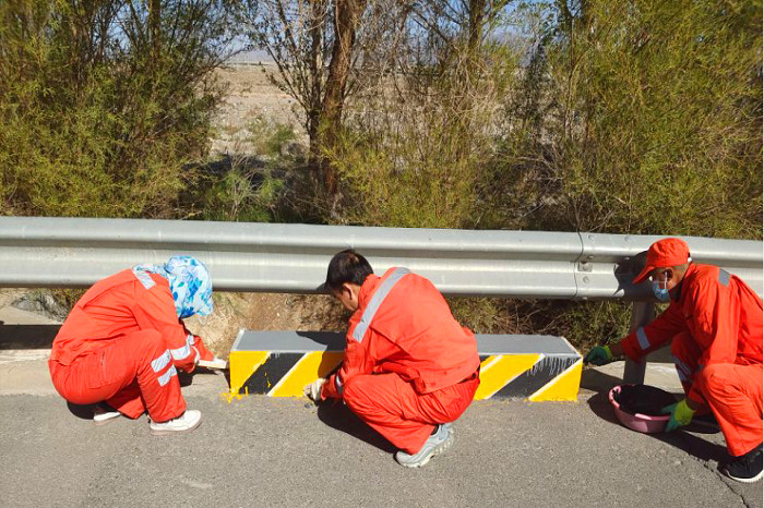 機關人員下沉一線充實養護隊伍,同養管站一線職工對起皮、脫落、褪色的橋梁欄桿、涵洞帽石進行刷新,對堵塞的橋梁伸縮縫、泄水孔進行清理疏通,用實際行動踐行“八棵樹精神”。