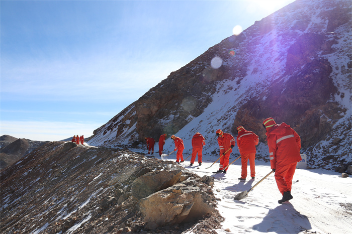 鏡鐵山深厚的積雪和凜冽的寒風考驗著每一個筑路工人。山口的大風,能吹落山崖上的石頭,把牛羊吹入深深的峽谷。而六十多年前的鄭占乾他們,就是在這樣的艱苦環境中,靠著簡陋的工具,開鑿著這條通往大山深處的公路。在凍土上開鑿,一個人一天只能鑿出一個小窩窩,幾乎人人都有凍傷。這里地勢險峻,稍不注意就有生命危險。艱苦的環境,擋不住公路人建設的熱情。四個月的時間,2000多人完成了幾乎不可能完成的任務,鏡鐵山公路全線貫通。而十幾名養路工人也把他們生命,永遠留在了大山深處的這條公路上。