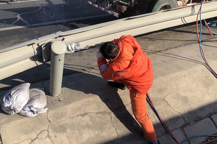 圖為更換損壞的護欄板