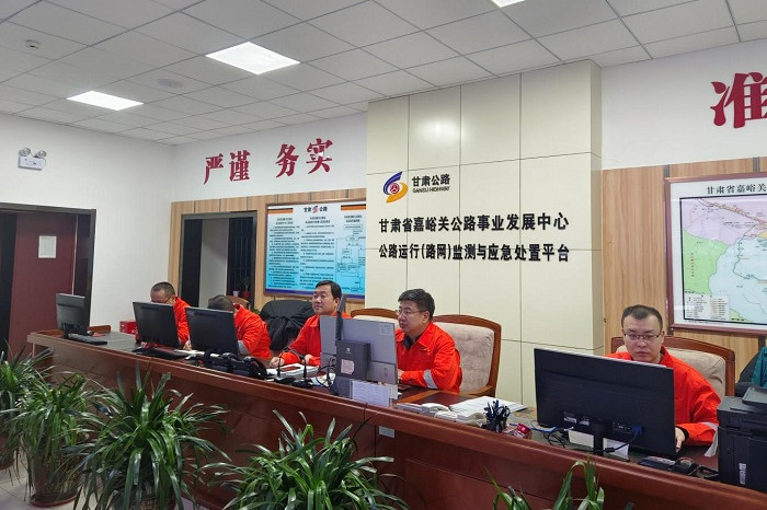 嘉峪關(guān)公路應(yīng)急保障與路網(wǎng)監(jiān)測(cè)中心協(xié)調(diào)職能科室、養(yǎng)護(hù)單位迅速對(duì)管養(yǎng)路段路基路面、橋梁、涵洞及交安設(shè)施開展全面排查,確保道路安全暢通。