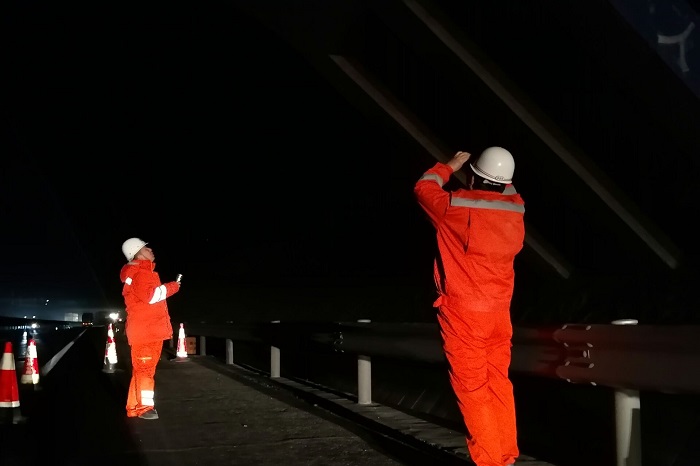 高速公路養(yǎng)護(hù)所對(duì)管養(yǎng)路段路基路面、橋梁構(gòu)造物、交安設(shè)施等通行情況及橋梁防震擋塊、支座位移、錐坡開裂、伸縮縫變形等病害情況進(jìn)行了全面排查。
