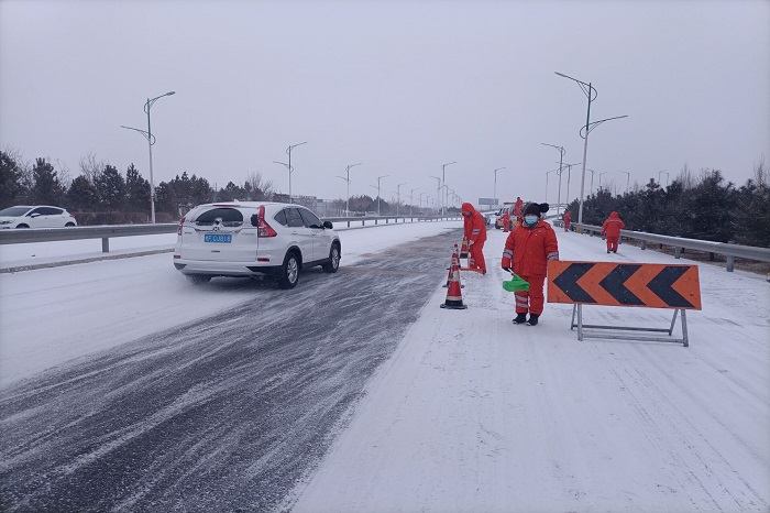 截至目前,該段共出動各類應(yīng)急車輛5輛,機械設(shè)備3臺,出動應(yīng)急保暢人員25人次,撒布融雪劑3噸、防滑料15立方米,各路段防滑應(yīng)急物資儲備充足到位,轄養(yǎng)道路通行正常,未發(fā)生交通事故,無車輛擁堵現(xiàn)象出現(xiàn)。