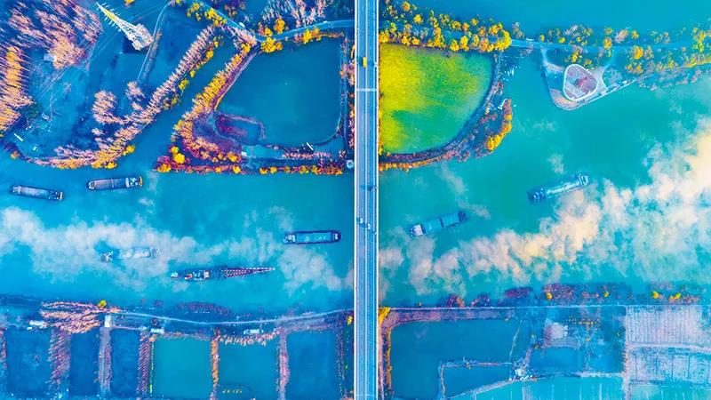 京杭大運河是古代交通文明成果和現代內河航運成果的歷史見證。作為我國南北向的水上運輸大動脈,京杭大運河在我國綜合運輸體系建設和長三角地區經濟社會發展中具有重要的地位和作用。圖為2021年12月4日,滿載貨物的船只通過京杭大運河江蘇省宿遷市宿城段。 求是圖片 馬海峰/攝