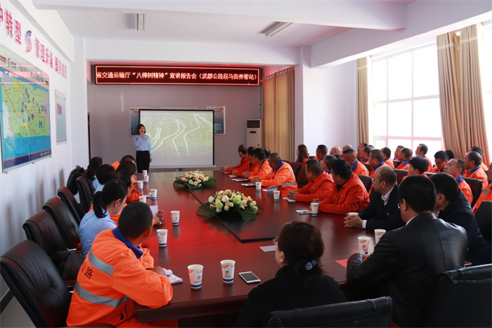 為鞏固深化黨史學習教育成果,宣貫好“八棵樹精神”,激勵廣大干部職工在新時代有新作為,由省交通運輸廳主辦,省公路事業(yè)發(fā)展中心和各地州市公路部門承辦的“八棵樹精神”事跡展播和巡回宣講報告活動,已先后在白銀、蘭州、定西、平?jīng)觥c陽、天水、隴南等地順利展開,宣講團的足跡已走過了半個甘肅,受到各地廣泛關注和熱烈反響。貨運司機代表表達了對甘肅交通公路人的感謝:“現(xiàn)在的公路又直又寬,貨車司機現(xiàn)在行路又省心又省油,高速公路四通八達又快又安全,特別是“司機之家”,為大家提供了休息、洗澡的好環(huán)境”;建設項目代表:力爭把高速公路建設成人民滿意的品質工程、平安工地、智慧公路、綠色項目,讓“八棵樹精神”在新時代公路項目管理過程中彰顯新的作用;青年基層養(yǎng)路職工代表:我從來沒有想過老一輩公路人在如此艱苦的環(huán)境下努力奮斗,作為新一代養(yǎng)護工的我們,一定會傳承好‘八棵樹精神’,立足本職崗位,不忘初心,砥礪前行;領導班子代表:將在行業(yè)內(nèi)外講好“八棵樹精神”的故事,發(fā)揮黨組織的戰(zhàn)斗堡壘和黨員的模范先鋒作用,為交通強國建設貢獻交通公路人的力量。