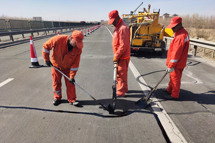 省嘉峪關公路發展中心雄關公路段按照春季公路養護管理要求,深鉆細研《甘肅省嘉峪關公路事業發展中心養護作業單元雙向選擇實施方案》,按照“以生產任務為導向,大忙季節實行有段所、無機關,有專崗、無部室”工作要求,進一步優化養護生產組織方式,柔化養護生產單元,以勞務人員+職工的形式,在全中心范圍內通過人員崗位雙向選擇迅速組成路面裂縫處治專業化作業隊,搶抓黃金季節,積極對G30連霍高速轄養路段開展路面裂縫處治工作,敲響養護歸位第一錘。
