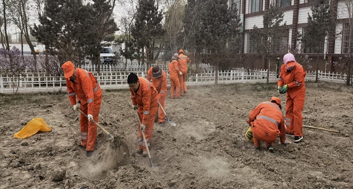 大家三五結組,分工明確。從翻耕開始,量好間距,借助自制的犁具沿著拉直的繩子松軟土地,說起來,最費力的就是這一步了,但在大家積極輪換中迅速完成了。緊接著便是在犁出的壟溝中撒下化肥,借助鐵锨撒下粒粒化肥,小小動作中展現出了對鐵锨——這個公路人“老伙計”的高度掌控,不一會就見化肥均勻工整地平鋪在壟溝里。土豆栽種時,主力就是我們的巾幗力量,她們輕輕地將母株放入挖好的苗床,覆蓋上細土,給予作物優良的生長環境。播種結束后,大家望著自己的勞動成果,彼此暢談中期待它們茁壯成長,暢想起日后共同分享的美好場景。