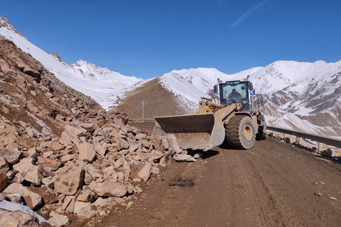 為消除安全隱患,2022年鏡鐵公路段把這塊“硬骨頭”列為重點工作對象,決定對該路段右側山體進行整治。S215線海拔高、空氣稀薄,天氣變幻莫測,為能夠按時完成工作項目,鏡鐵山養管站的“愚公”們,無論晴天、雪天節假日、中午都不休息,工地上大家困了坐在路邊休息,餓了喝點水就著干糧、方便面。功夫不負有心人,在大家一個半月的努力下,該路段路面得到了拓寬,安全隱患得到了徹底的整治,為過往車輛提供了更好的通行條件。
