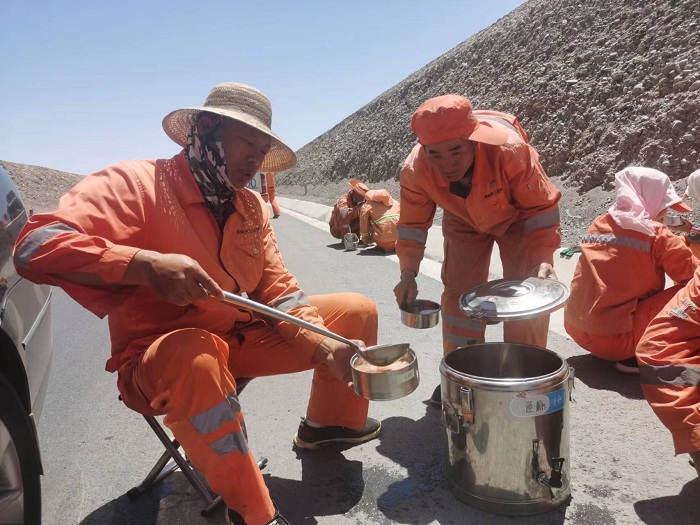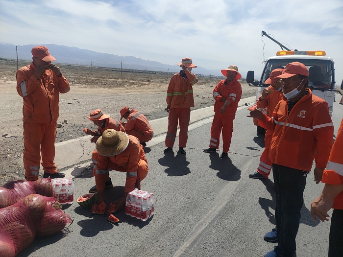 慰問中,段領導與職工們親切交談,并針對高溫期是安全事故易發多發的季節特點,叮囑大家高度重視安全,繃緊安全弦、把好安全關,在班前交底和總結中進一步強調勞動保護,作業過程中要時刻關注職工身體狀況,扎實推進防暑降溫工作,將職工身體健康和安全防范放在第一位。同時對職工們不畏酷暑、堅守崗位,用實際行動踐行“八棵樹精神”的默默付出給予了充分肯定,感謝大家在炎炎烈日下仍兢兢業業奮斗在養護一線。正是因為大家的勤勤懇懇、愛崗敬業,才能為過往車輛提供暢安舒美的通行條件。