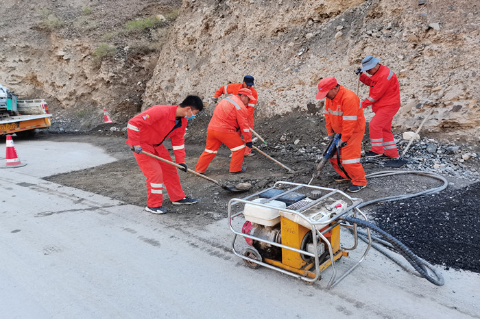 鏡鐵山轄養路段深處鏡鐵山區腹地,遠離市區、海拔高、氣溫低,油路修補工作難度大,為全面提升路況質量,打造安全暢通行車環境,鏡鐵公路段以提升養護精細化程度為著力點,狠抓修補工序細節和技術管理。