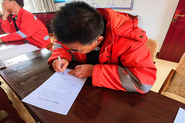 以交流為著力點提升風險辨識技能。會議集體觀看了《生命重于泰山》《安全事故警示錄》警示教育片,各部門負責人進行了現場交流發言,分析研判新的一年養護生產工作中面臨的安全生產形勢,交流風險防范措施,全體職工現場簽署了拒絕酒駕承諾書。