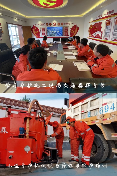 學習“+”,加強學習提素質。該段堅持本著“干什么學什么、缺什么補什么”的態度,以“四學四提升”專題學習月為契機,將理論學習融入日常、抓在經常,同時結合工作實際需求,組織全體職工開展了小型養護機械設備操作與維護實地培訓、養護施工現場交通指揮手勢專題培訓等“專業課”的學習,努力消除個人“知識恐慌”,加快填補個人“本領赤字”,真正成為公路養護實操中的行家里手。