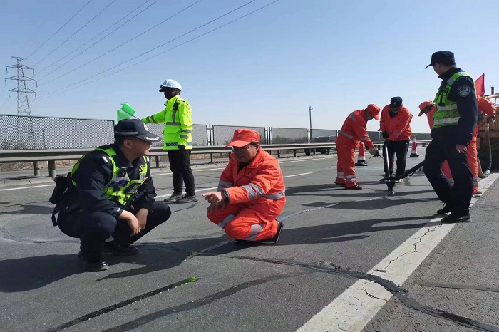 強化安全管理,筑牢安全管理“防火墻”。設計制作作業區布設APP,對作業區布設進行模塊化管理,只需輸入養護作業路段起始樁號即可自動生成作業區每一塊標牌、每一個錐桶的具體位置,實現作業區布設“模塊化”管理。完善安防物資儲備,為現場管理人員配置路政同款熒光服26件(套)、智慧安全帽1頂、聲光報警錐桶10個、交通指揮機器人4個、仿真警車2個、錐桶1000個、防撞桶25個、沙袋5000個、補充警示爆閃肩燈30個、滅火器55個,實現了作業過程“目視化”管理。嚴格落實主要領導跟班作業制度的同時,高速公路灌縫作業實行雙安全員、雙交通指揮員配置,切實保障養護工人作業安全,預防各類安全生產事故發生。