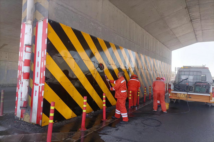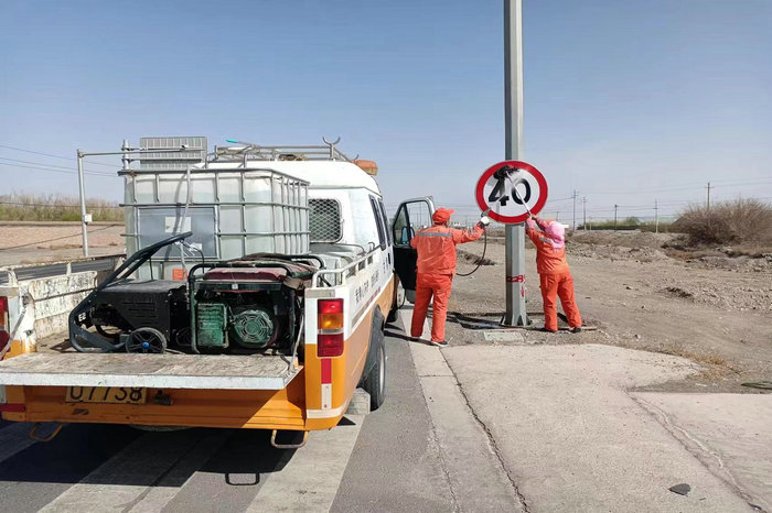 該段采取人工與機(jī)械相結(jié)合的方式,利用高壓沖洗與人工清潔相結(jié)合作業(yè)模式,對(duì)G312線、S301線公路沿線的標(biāo)志標(biāo)牌、道口樁、里程碑、輪廓樁、波形護(hù)欄、防撞墩、橋欄桿等交安設(shè)施全面進(jìn)行了清洗。經(jīng)過清洗的交安設(shè)施清晰、醒目,確保其安全警示、安全提示、防護(hù)作用能夠充分發(fā)揮。