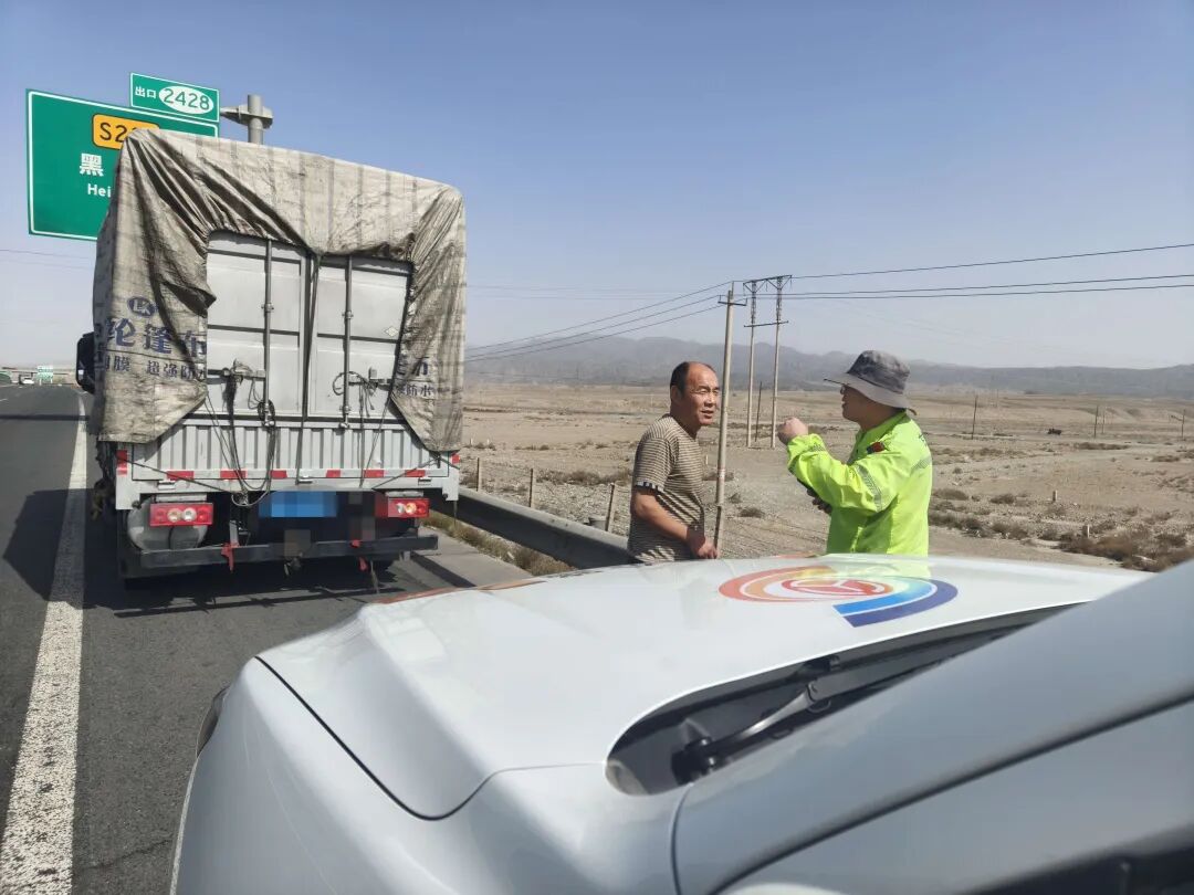 5月1日10時許,高養所巡查人員在日常巡查監管的G30路段時,發現一輛白色貨車停靠在XK2427+900處應急車道上,車主正在車旁焦急徘徊。巡查人員立即停車上前詢問,得知車輛因燃氣耗盡導致拋錨,隨即在車輛后方150米處設置警示標志,并引導過往車輛避讓,同時協助司機聯系應急救援車輛。