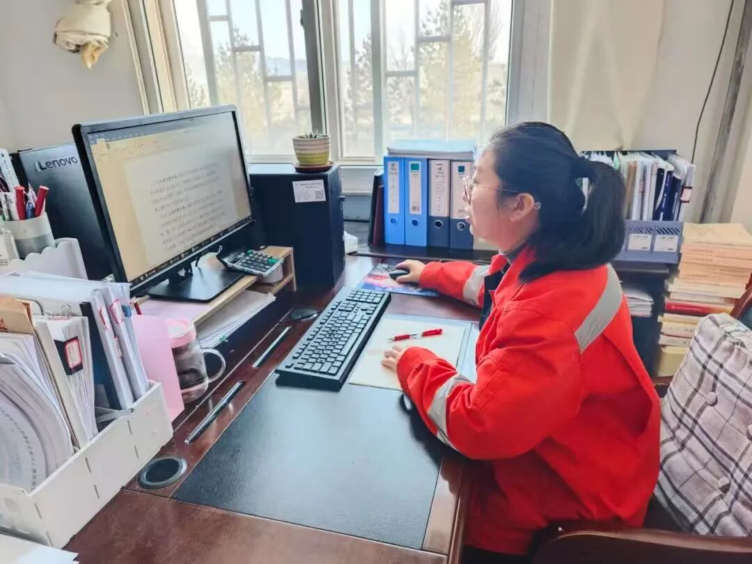 安全科的趙蕾正在整理當日安全檢查記錄,手機突然亮起——是兒子發來的數學作業照片。“這道題媽媽也不太會,明天請教老師好嗎?”她快速回復后,繼續核對安全臺賬。辦公桌前,是兒子親手寫的“媽媽安全守則”:“第一條:媽媽要注意安全;第二條:媽媽要按時吃飯;第三條:媽媽要記得休息...”