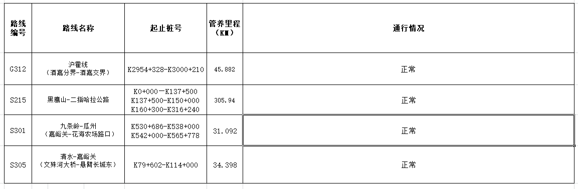 • 嘉峪關公路事業發展中心管養公路路況信息(2025年8月26日)