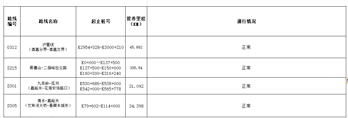 嘉峪關(guān)公路事業(yè)發(fā)展中心管養(yǎng)公路路況信息(2025年11月28日)