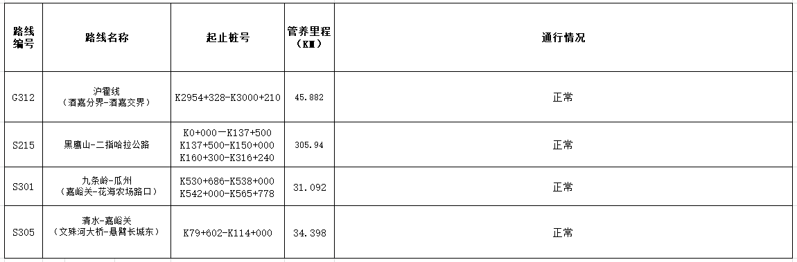 • 嘉峪關(guān)公路事業(yè)發(fā)展中心管養(yǎng)公路路況信息(2025年12月1日)
